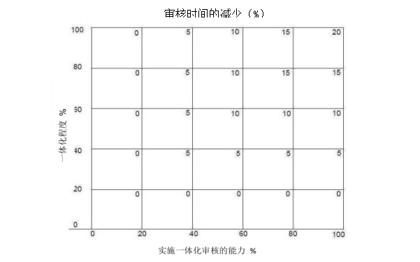 注3:图中数值代表该区域可缩减的结合审核人日数占结合审核人日数起始点(T)的百分数。