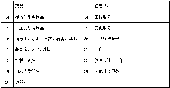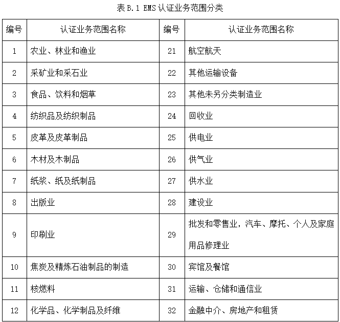 B.1 EMS认证业务范围共划分为39大类,详见表B.1。