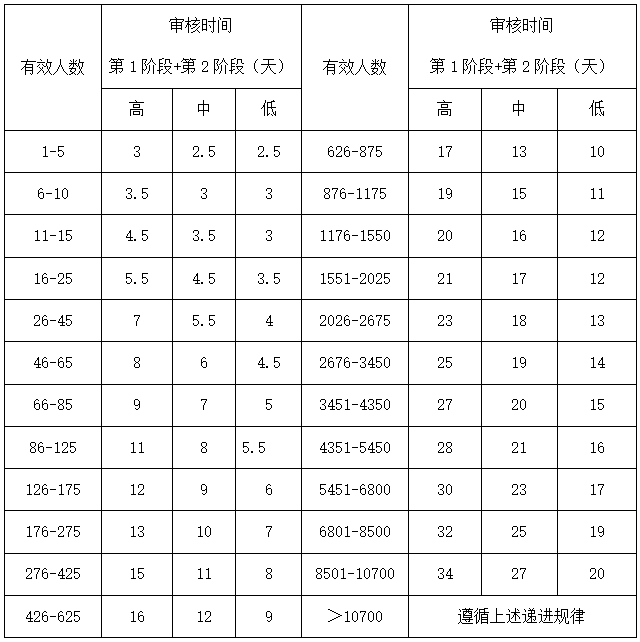 注1:审核时间按高、中、低的环境因素复杂程度分别显示。