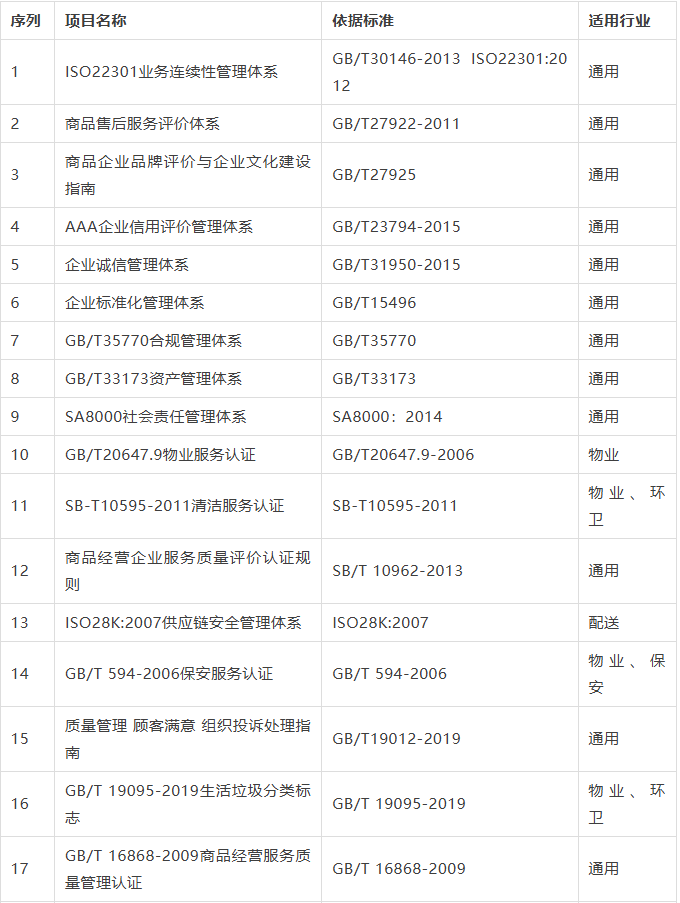小编下面给大家列举下各行业适合做哪些服务认证;