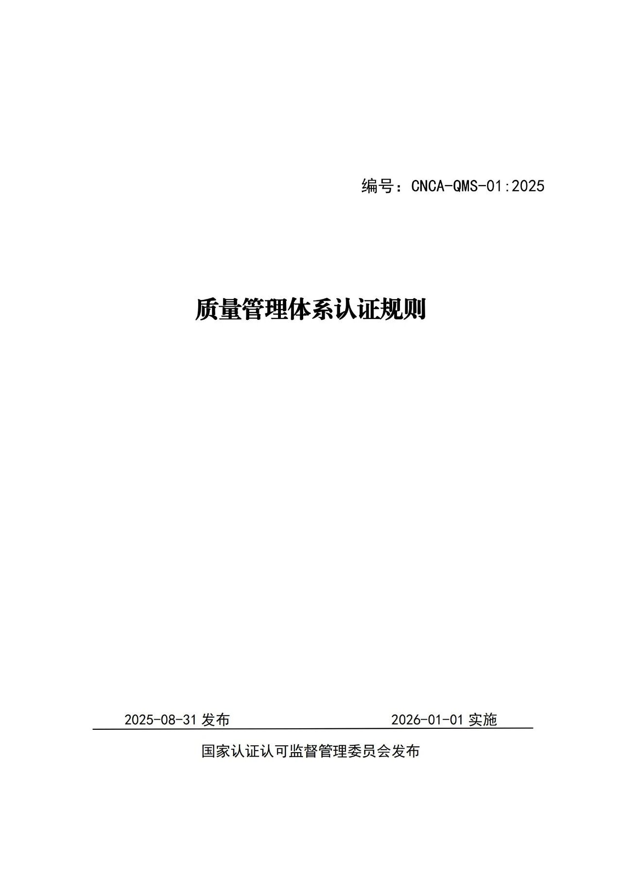 三、自2026年1月1日起,质量管理体系认证活动应当按照新版规则实施。