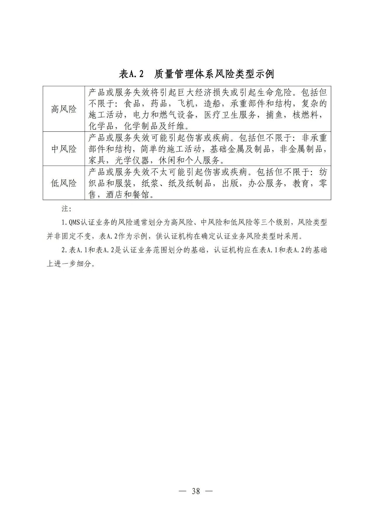 注 3:认证机构应参照附录 A 表 A.2 确定 QMS 认证业务范围的风险类型。